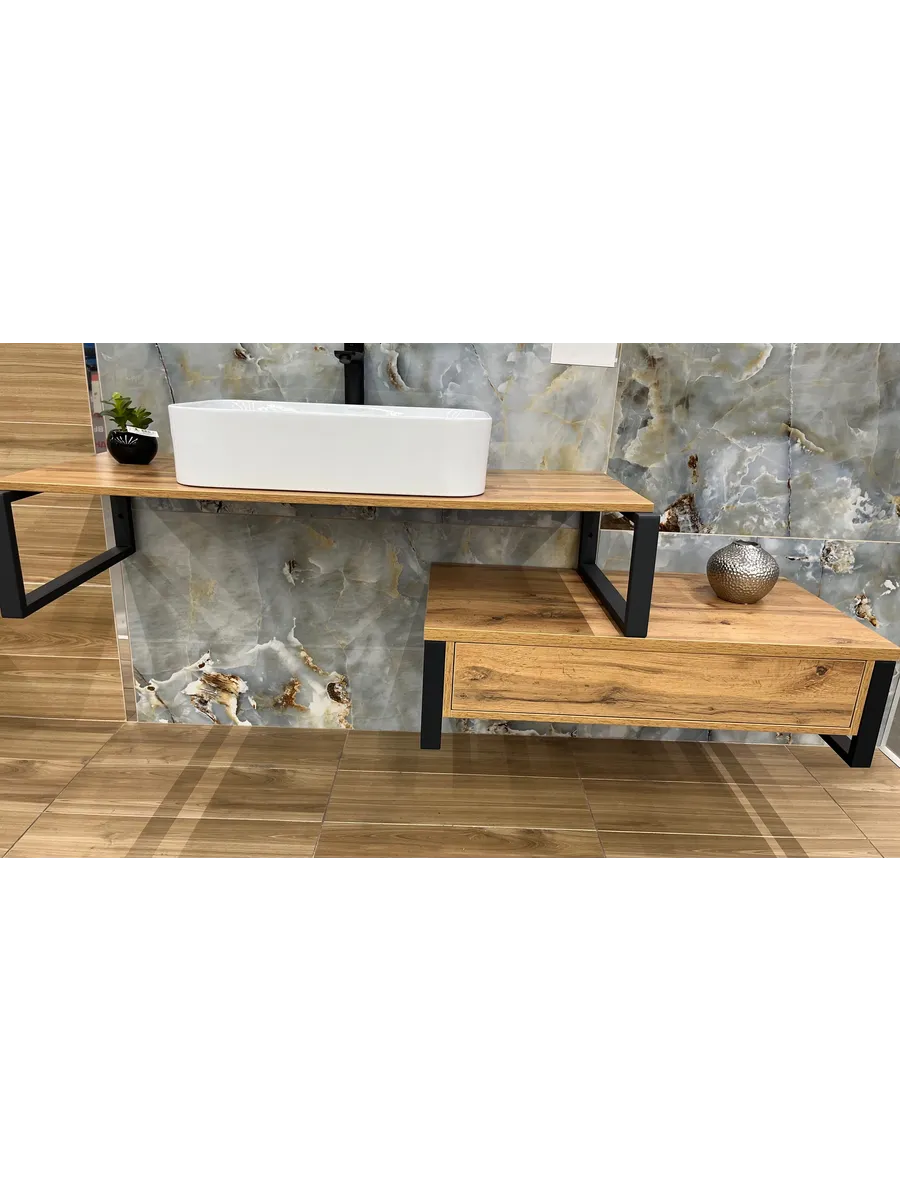 В комплекте 2 кронштейна, заглушки и крепежи. С помощью кронштейна можно зафиксировать столешницу под раковину или полку
