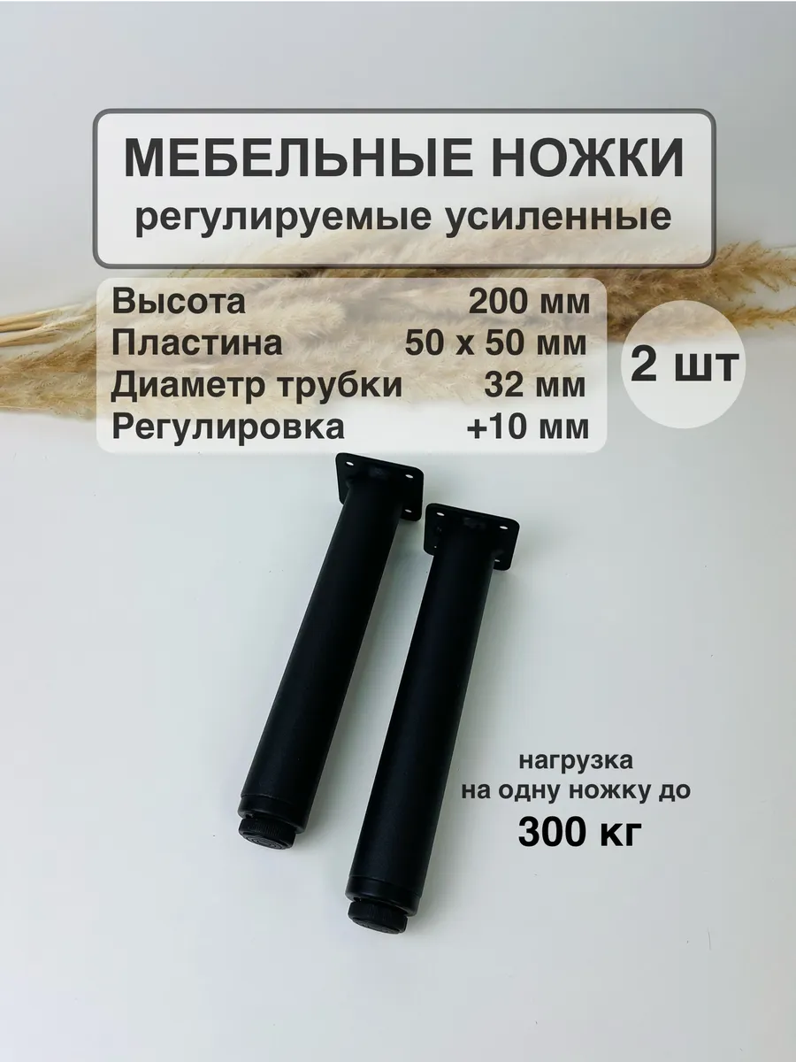 Регулируемые усиленные ножки из прочного металла выдерживают нагрузку до 300 кг на каждую, обеспечивая надежную опору для любой мебели.