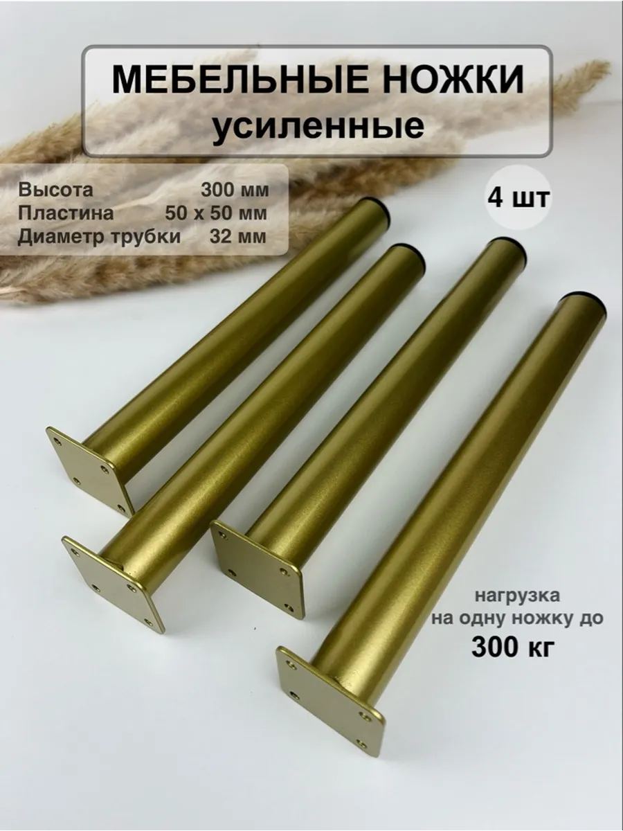 Эти усиленные ножки из прочного металла выдерживают нагрузку до 300 кг на каждую, обеспечивая надежную опору для любой мебели.