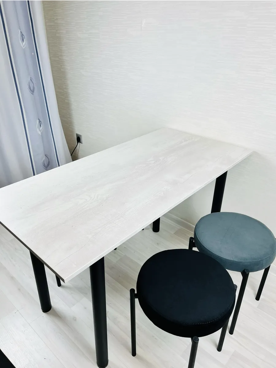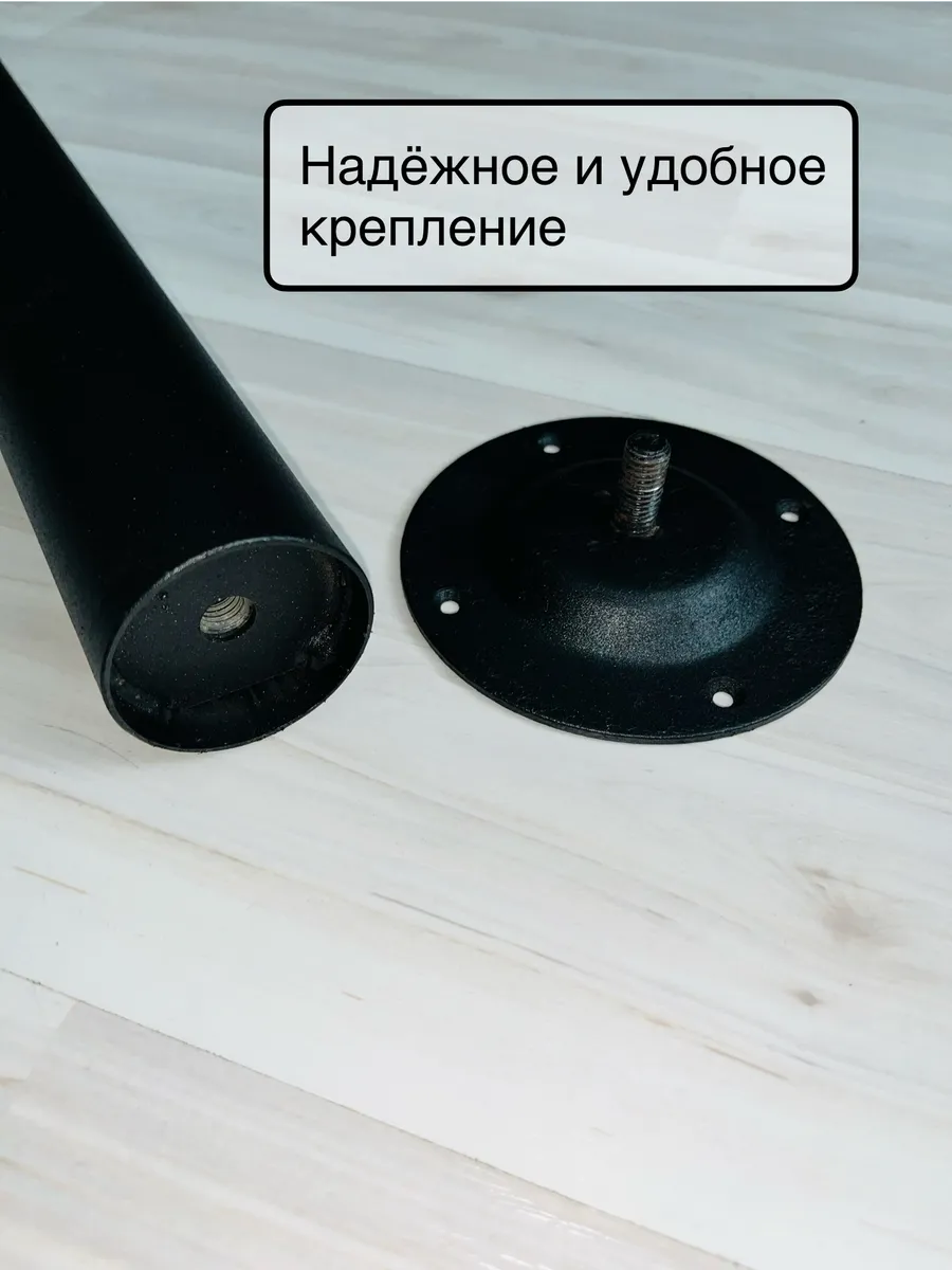 Высокопрочная порошковая покраска, черный муар, металлические опоры диаметром 50 мм, толщина металла 1,5 мм. Ножки для стола металлические, очень устойчивые, для любого вида столешницы.