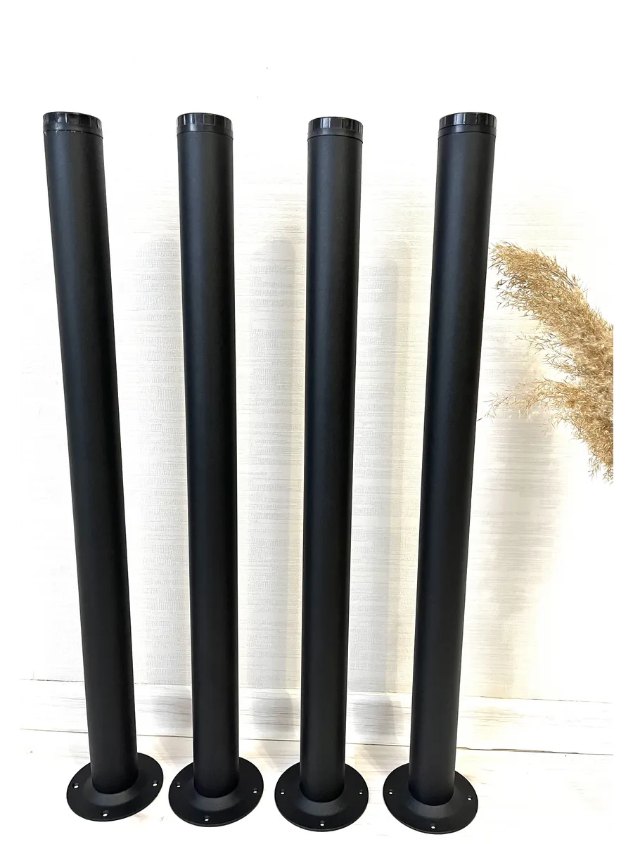 Высокопрочная порошковая покраска, черный муар, металлические опоры диаметром 50 мм, толщина металла 1,5 мм. Ножки для стола металлические, очень устойчивые, для любого вида столешницы.