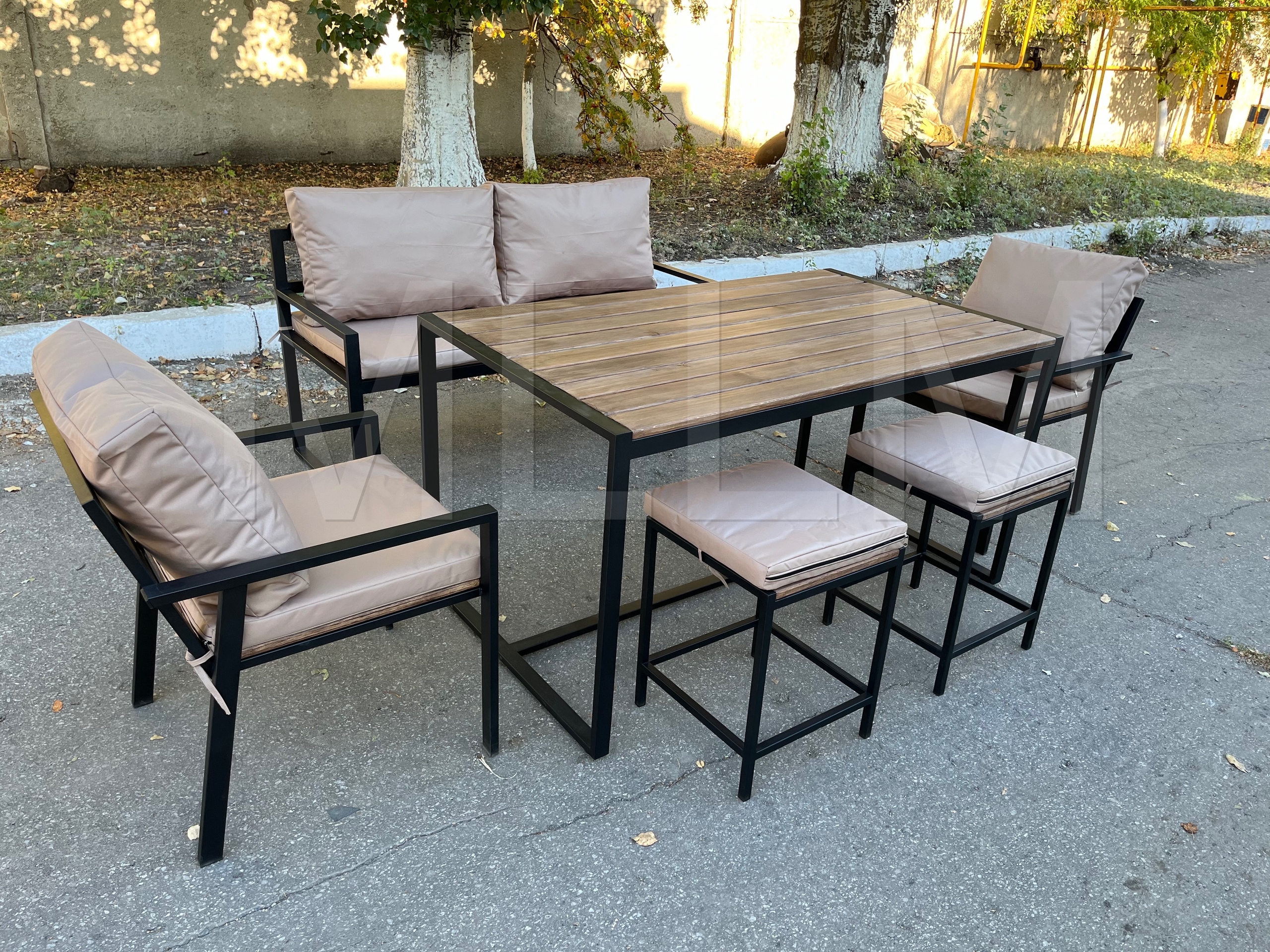 Стол на цельносварном металлическом каркасе, порошковая окраска, натуральное дерево.