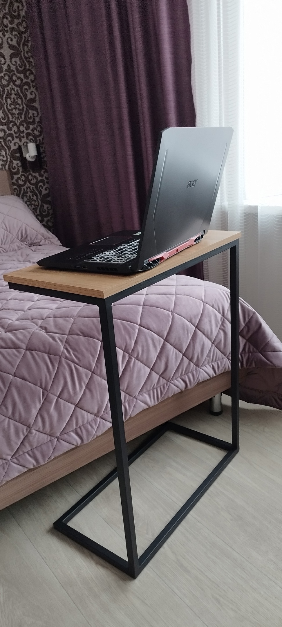 Удобный, малогабаритный и практичный стол для ноутбука. Можно использовать как прикроватный столик, либо придиванный.