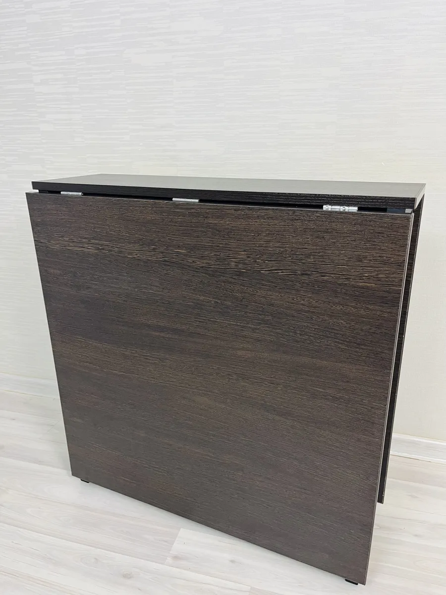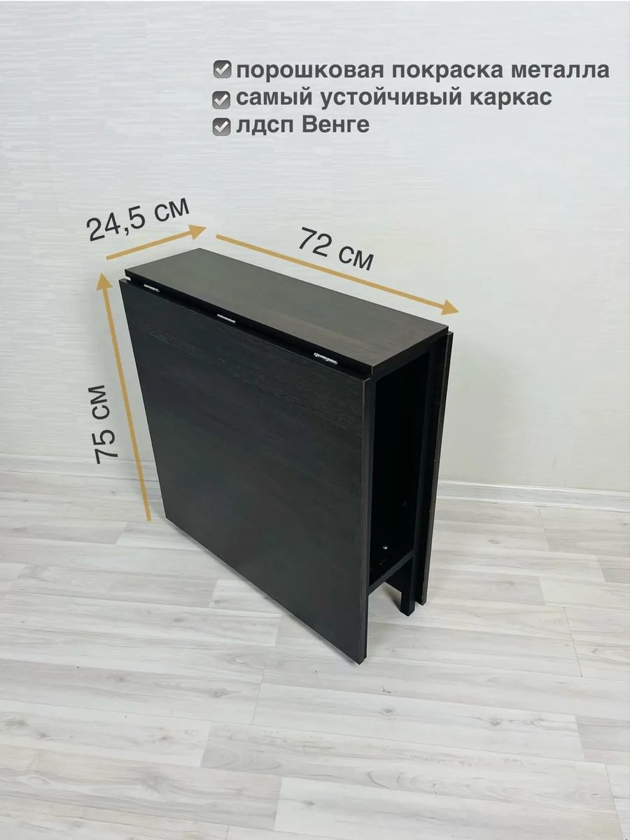 Стол-книжка раскладной, столешница ЛДСП 16 мм, высокое качество, цвет столешницы Венге, богатая текстура дерева, каждый рисунок уникальный, прочный, надёжный и устойчивый металлический каркас, цвет каркаса чёрный, высокопрочная порошковая окраска металла.