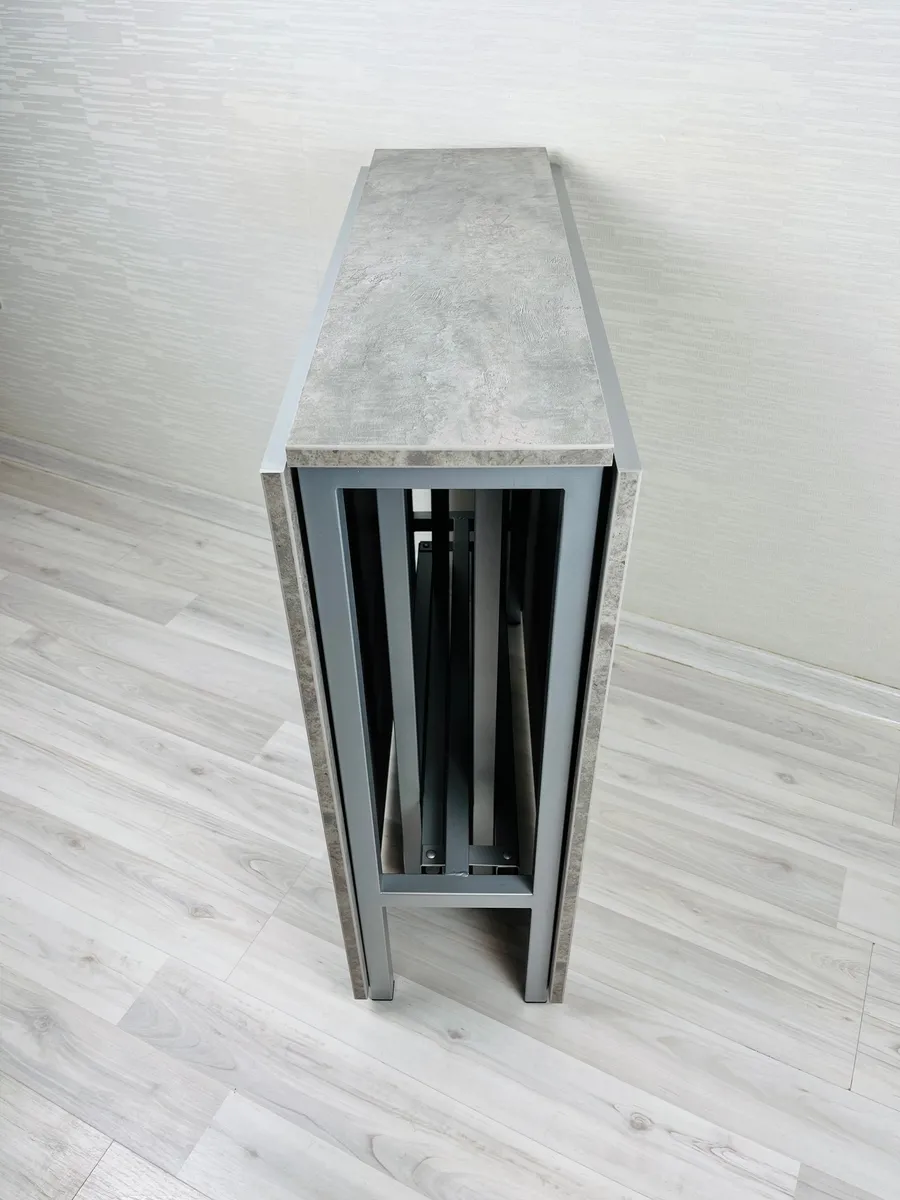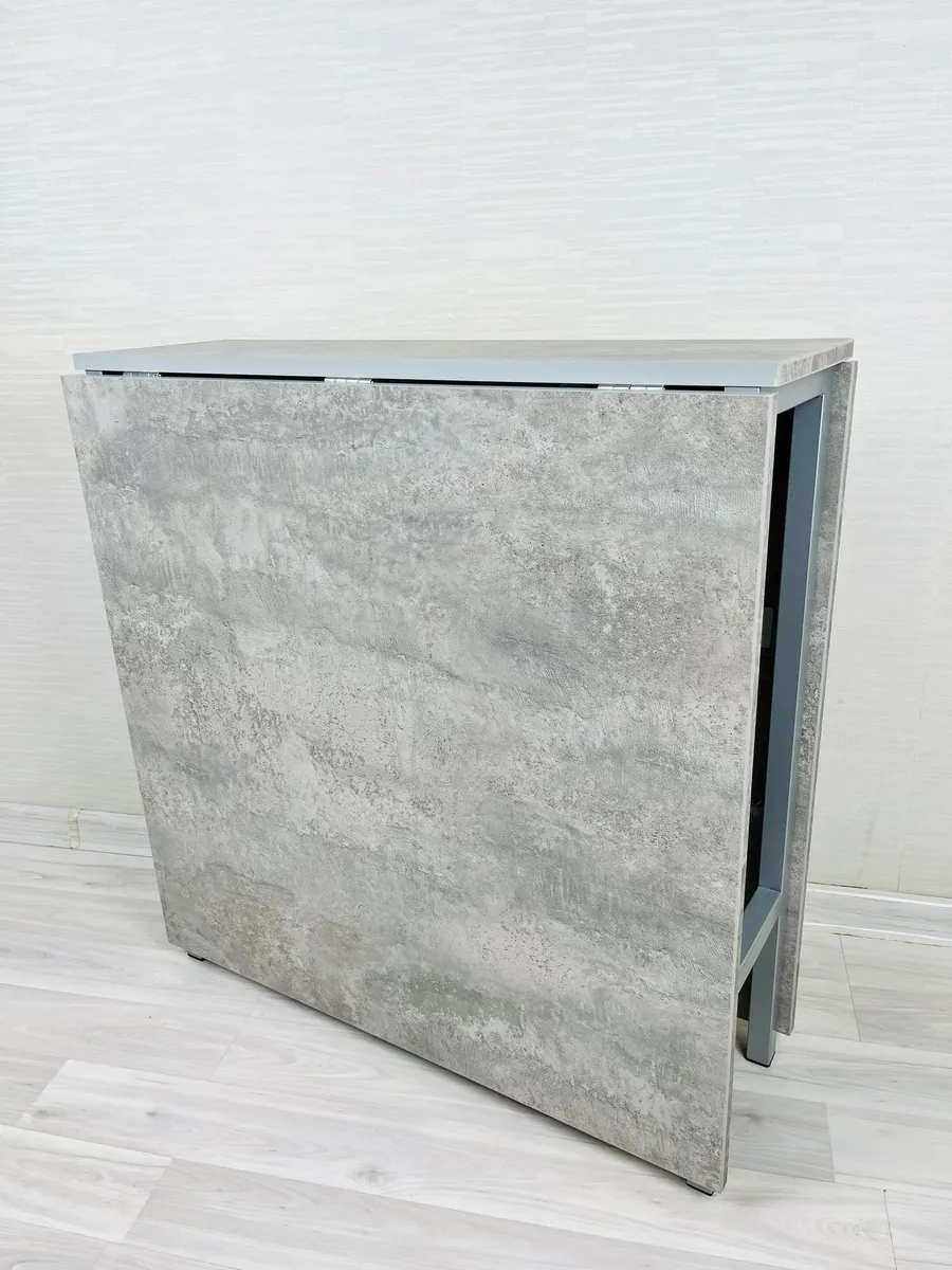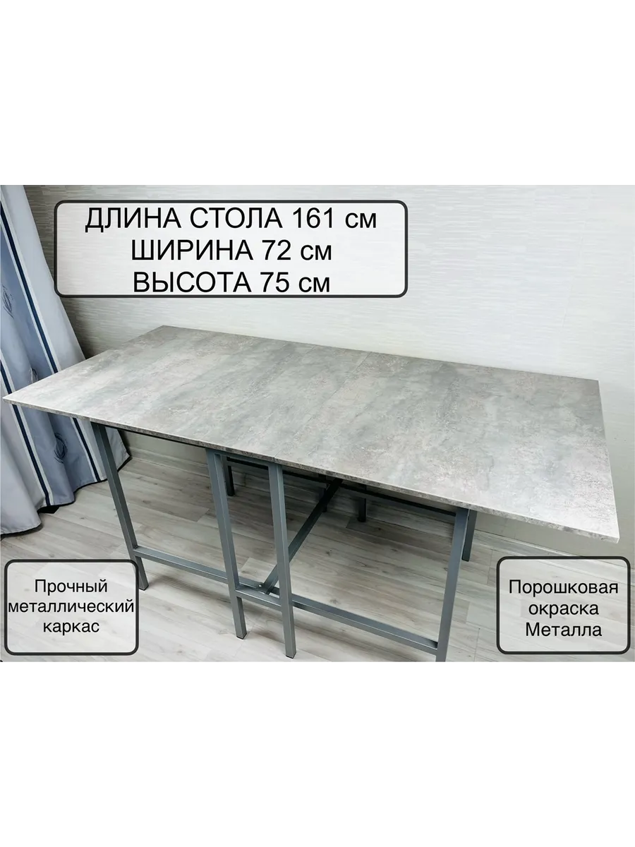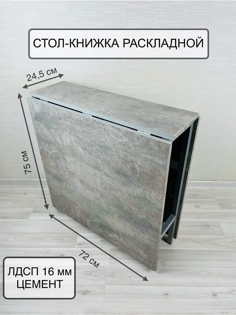 Стол-книжка раскладной, столешница ЛДСП 16 мм, высокое качество, цвет столешницы Цемент, богатая текстура, каждый рисунок уникальный, прочный, надёжный и устойчивый металлический каркас, цвет каркаса серый, высокопрочная порошковая окраска металла.