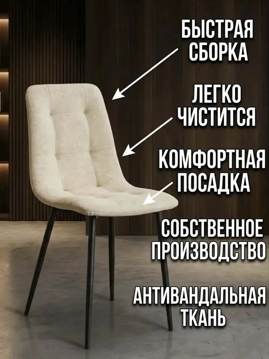 Стул Фред для кухни, в комплекте 4 стула, стулья мягкие из антивандального велюра.
