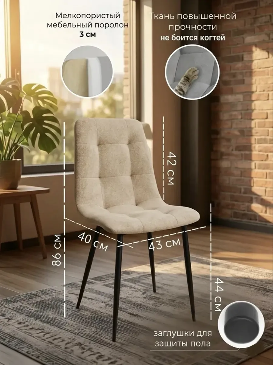 Высота от пола до сидения: 44 см – стандартная высота, подходящая для большинства столов.