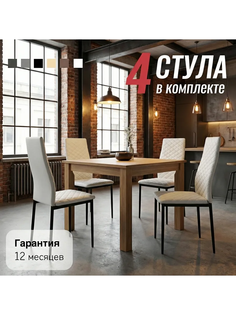 Представляем вам комплект из 4 кухонных стульев, которые станут идеальным дополнением к вашему интерьеру. Эти стулья сочетают в себе прочность, комфорт и современный дизайн, делая их отличным выбором как для семейных обедов, так и для уютных посиделок в кафе.