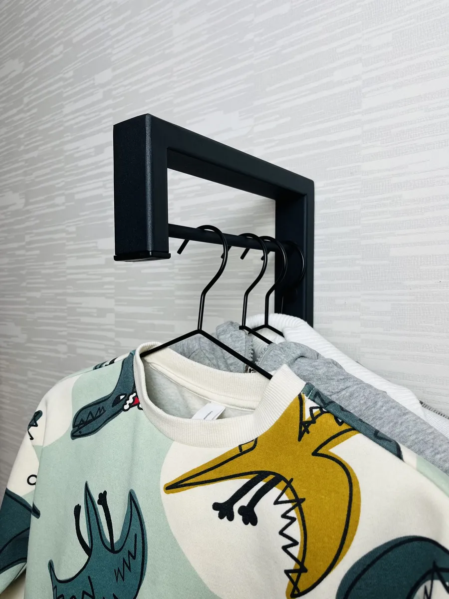 Вешалка настенная для плечиков металлическая - украсит интерьер и будет прекрасным дополнением вашего современного интерьера. Металлическая конструкция надёжно удерживает даже самые тяжёлые шубы, куртки или пальто.