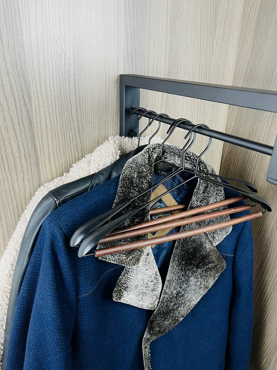 Вешалка настенная для плечиков металлическая - украсит интерьер и будет прекрасным дополнением вашего современного интерьера. Металлическая конструкция надёжно удерживает даже самые тяжёлые шубы, куртки или пальто.